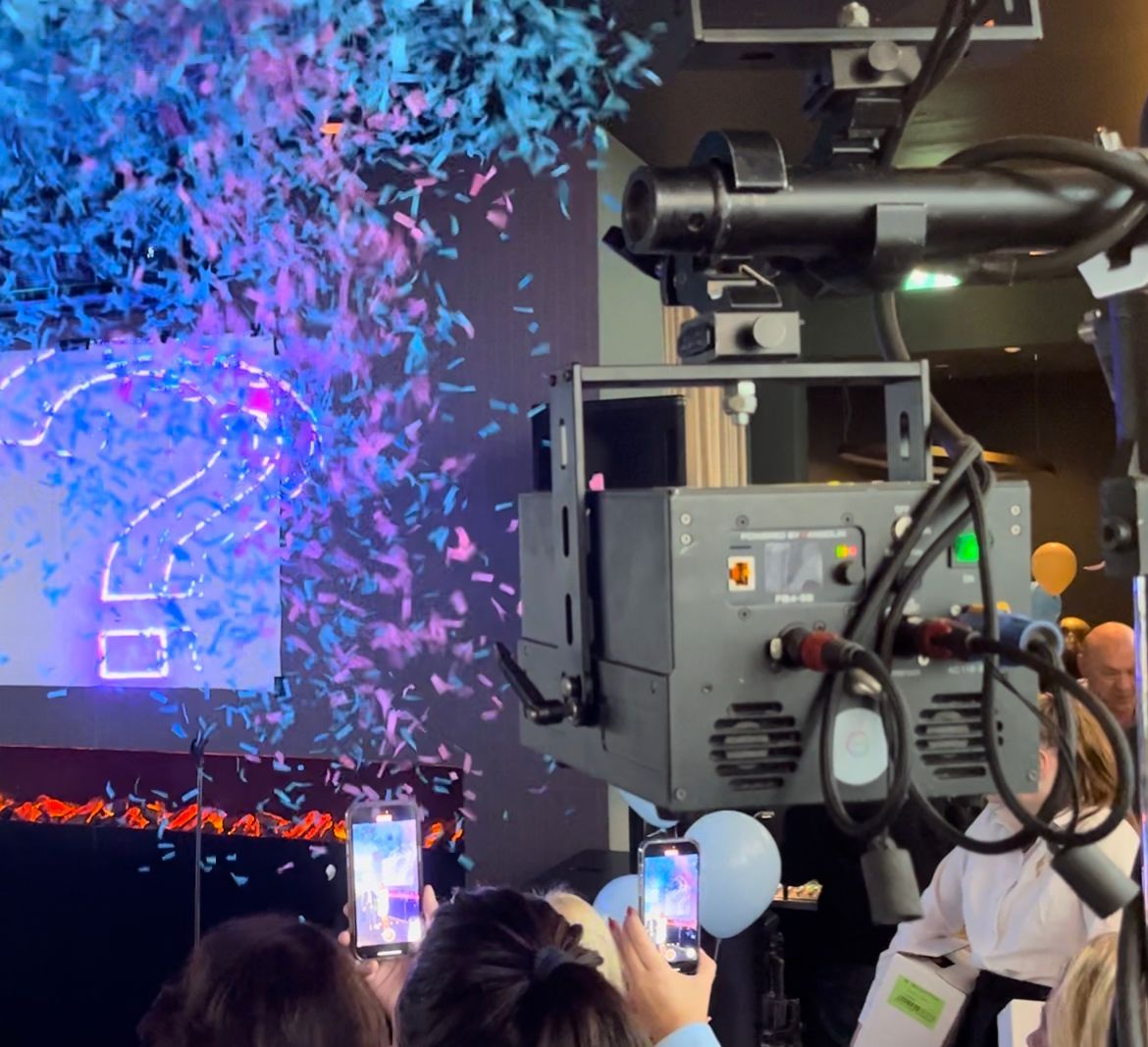 Deze Gender Reveal is op maat gemaakt met diverse mogelijkheden en uitbreidingen. Zodra je op de knop slaat komt er een spanningsmoment aangestuurd door lasers tot het daadwerkelijke onthul moment! Dit laatste is mooi af te maken met confetti of streamers!